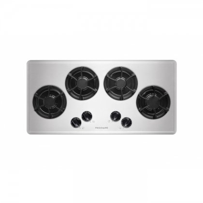 The Frigidaire FFGC3613LS 36 In. Gas Cooktop in stainless steel features a unique array of burners designed for both maximum efficiency and elegance. Its four burners are not laid out in the typical two by two pattern, but instead shaped into an arc. This means you’ll never have to reach over a hot pot or pan to have access to the back burners, and that the controls are incredibly easy to use. The knobs are laid out in parallel to their respective burners, meaning getting them confused is almost impossible, especially when taken into account how well labeled they are. To top it off, the cooktop features electronic pilotless ignition and attractive color-coordinated control knobs.Package Content:CooktopmanualwarrantyTwo 9,500 BTU burnersOne 12,000 BTU burnerStainless steel cooking surfaceBlack matte cast iron gratesLiquid propane to natural gas conversion optionHeight 2.88Width 36.00Depth 18.00Weight 35.00Color Stainless SteelOperating SystemBatteries IncludedBatteries RequiredNumber of BatteriesBattery Type no batteries requiredLanguage EnglishAssembly Required36 in. gas cooktop